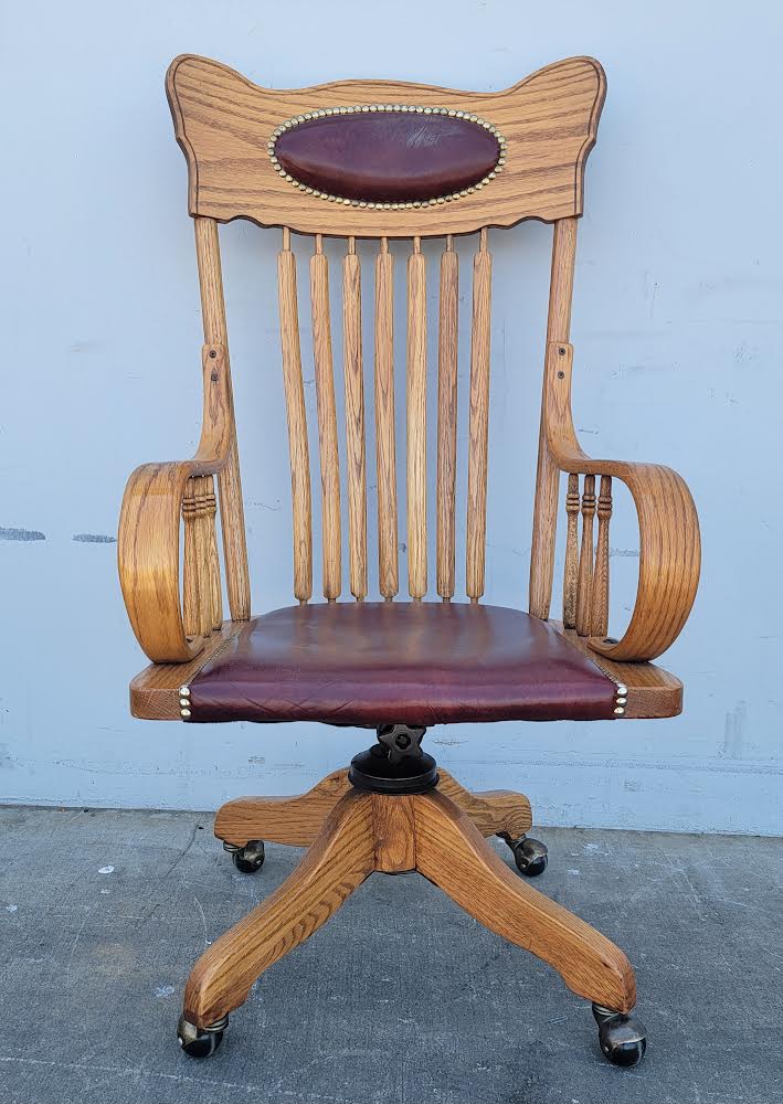Vintage/antique swivel adjustable leather oak office armchair H.W. Hull & sons style
