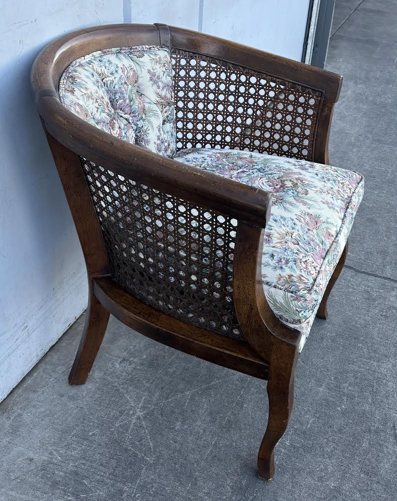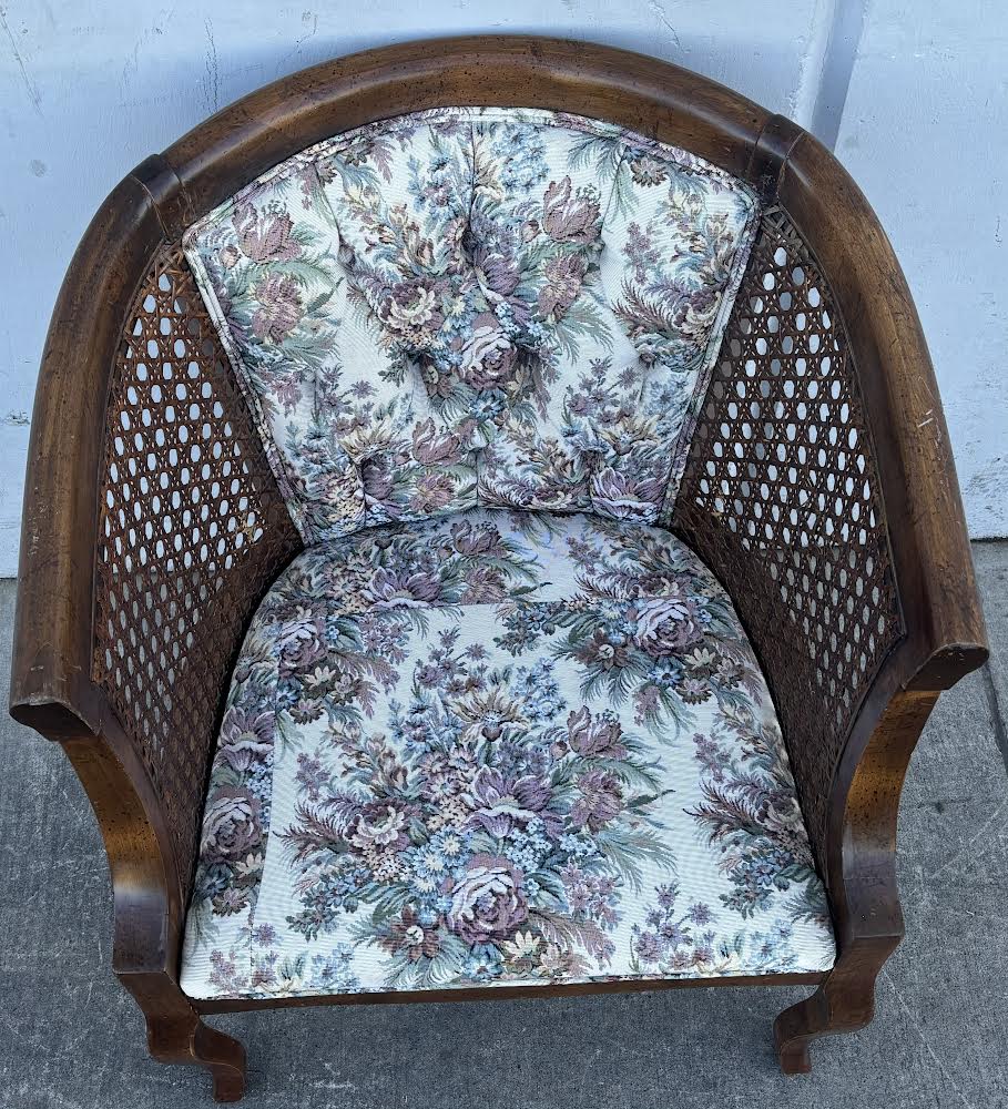 Hello we are selling a Vintage Cane Chair Floral Cushion , it is in good condition .