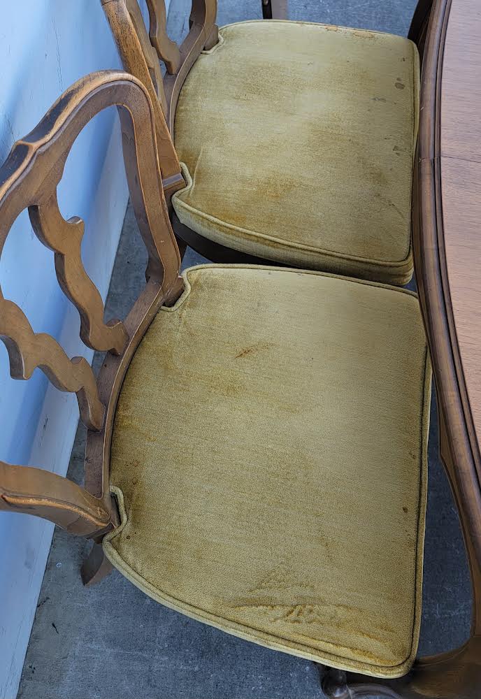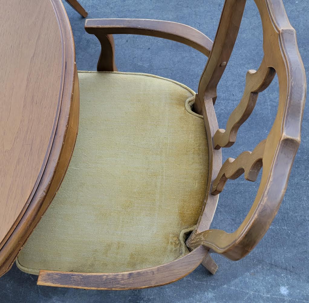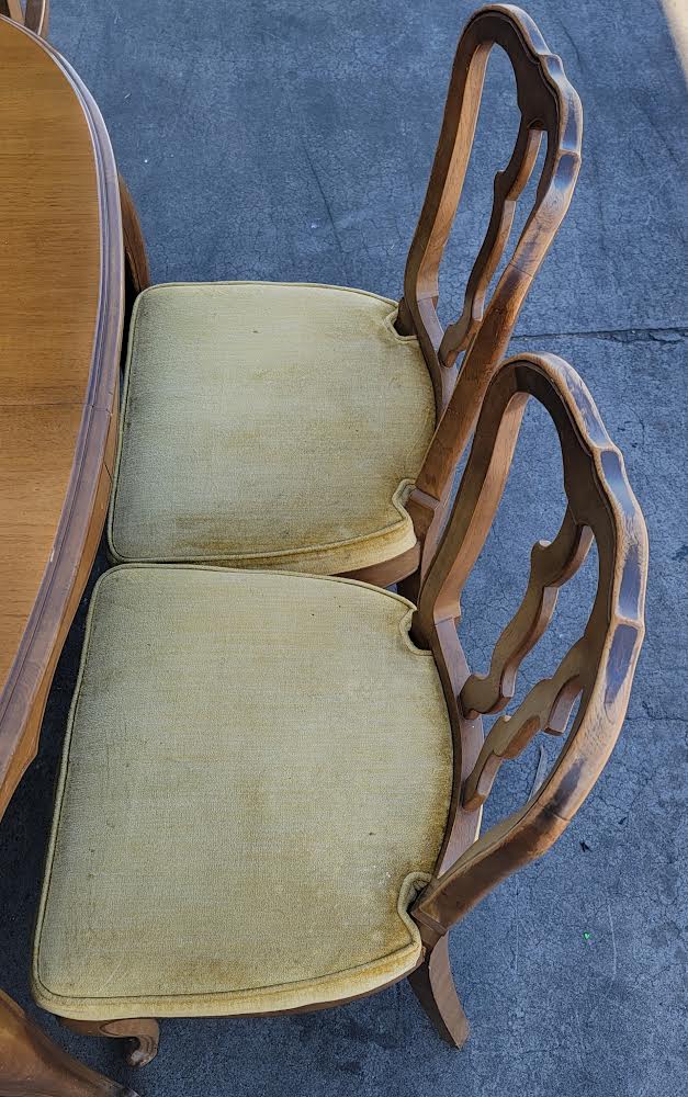 Hello we are selling a Vintage Dining Set wood oval French provincial table and 6 chairs ,it is in good condition .