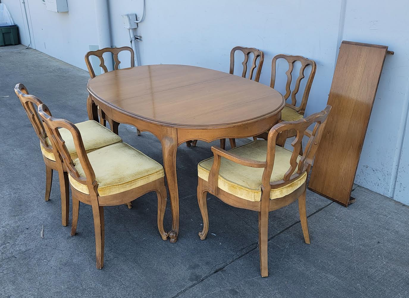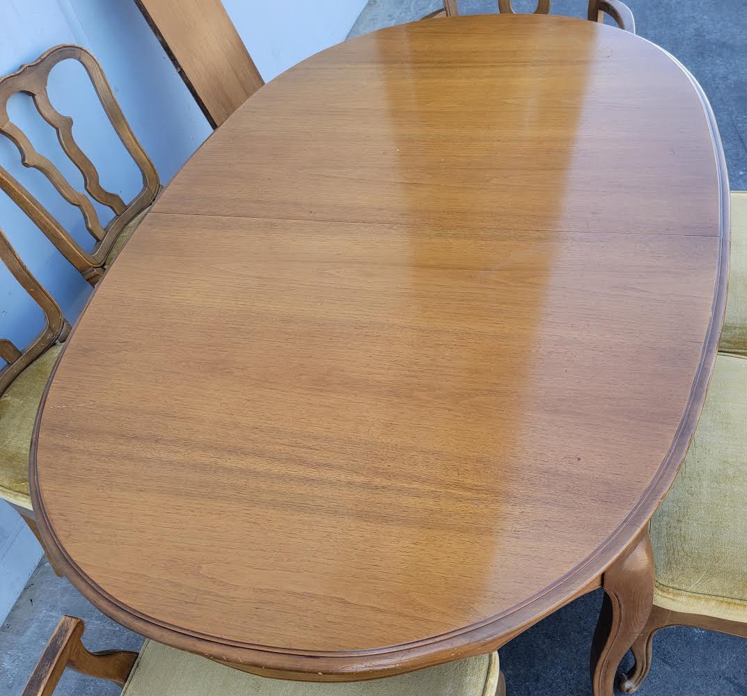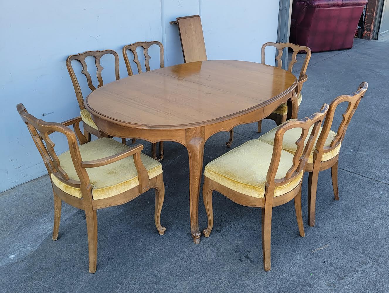 Vintage Dining Set wood oval French provincial table and 6 chairs