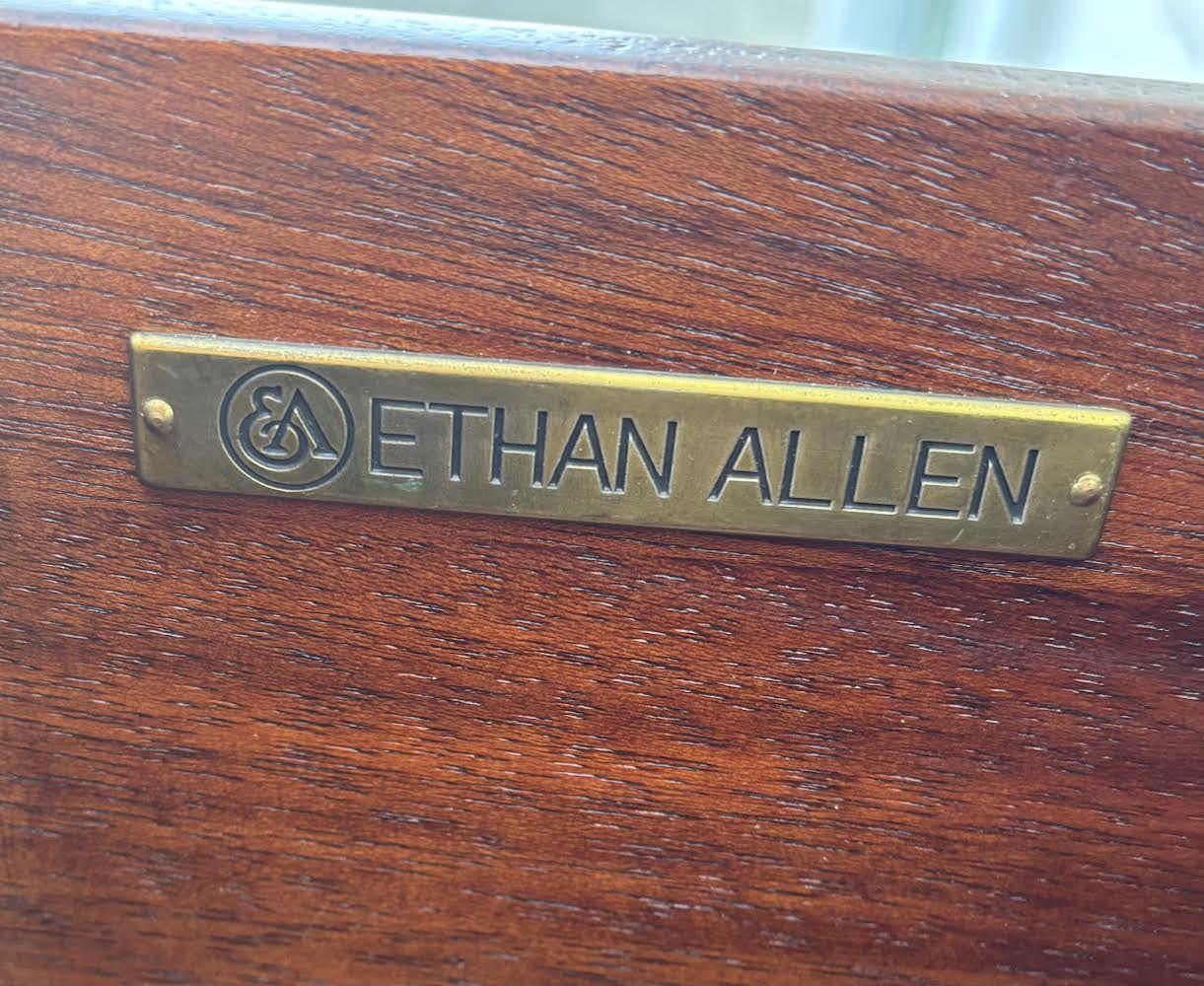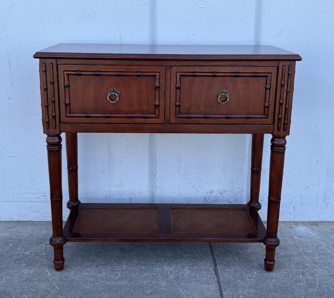 Hello we are selling a Vintage Ethan Allen Faux Bamboo/Solid Wood Entry Table Console Table ,it is in good condition .