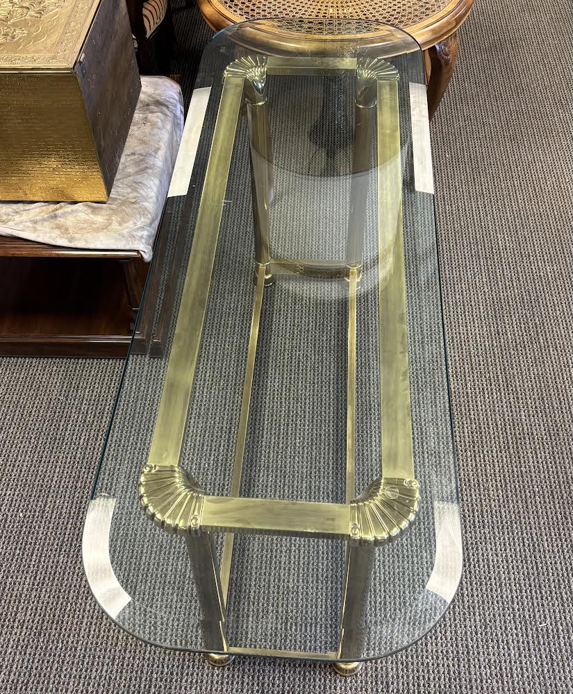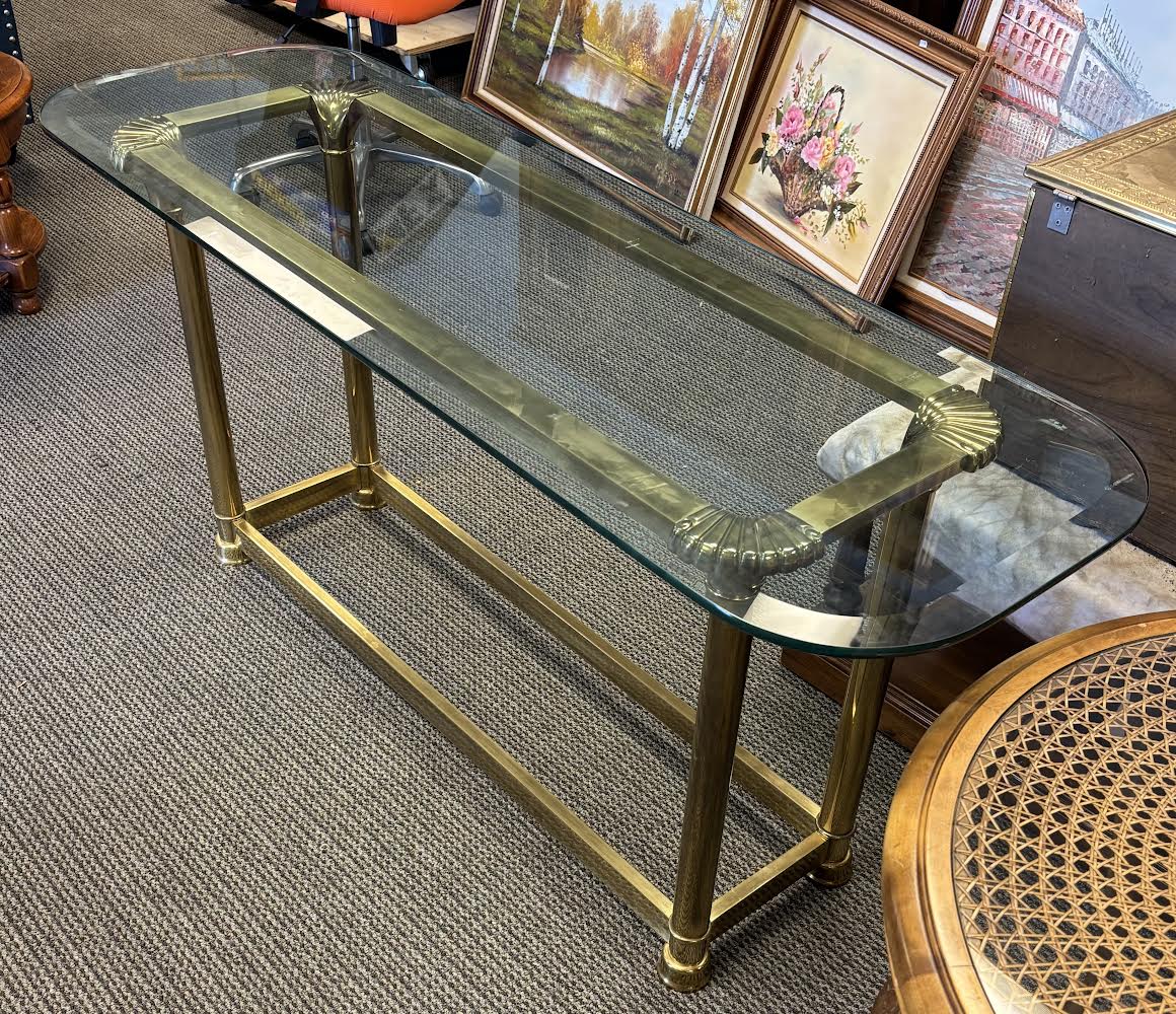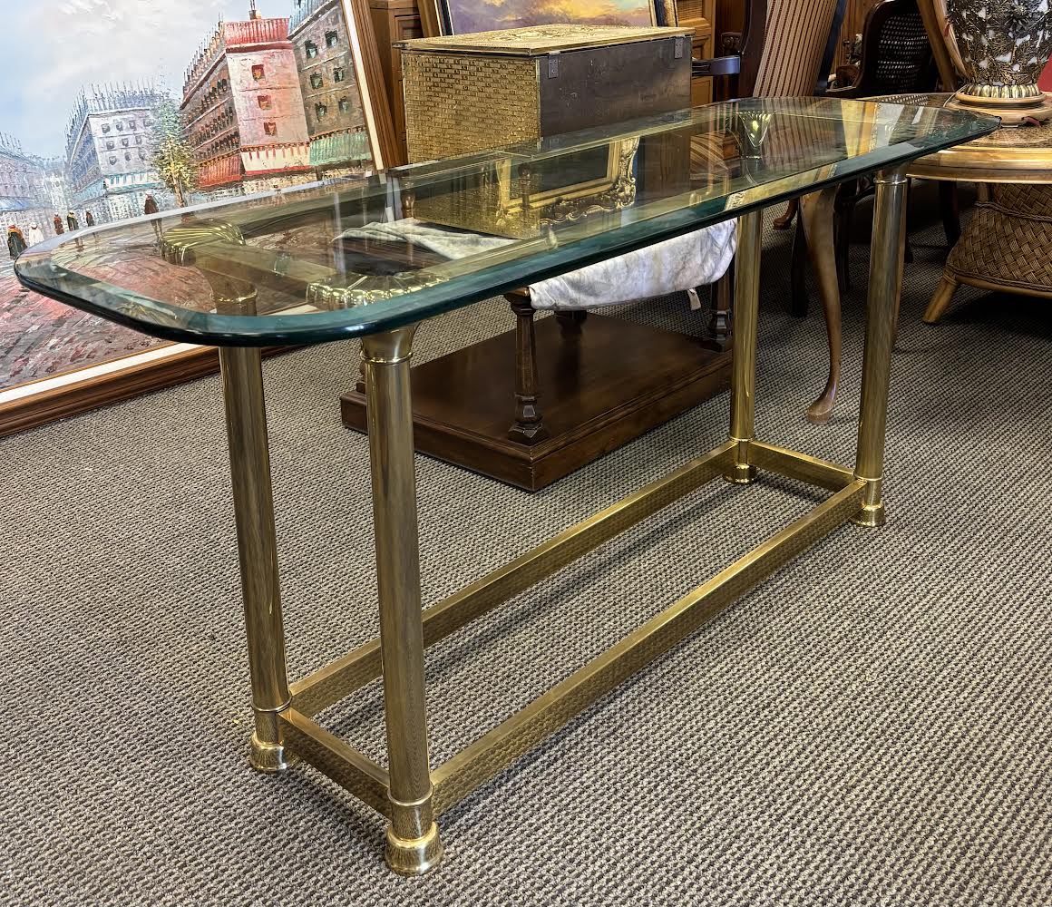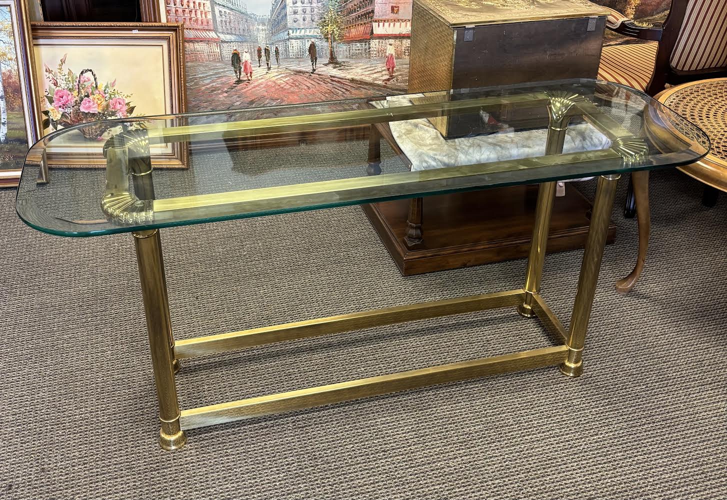 Vintage Mastercraft Style Brass & Glass Sofa Table ,it is in good condition .