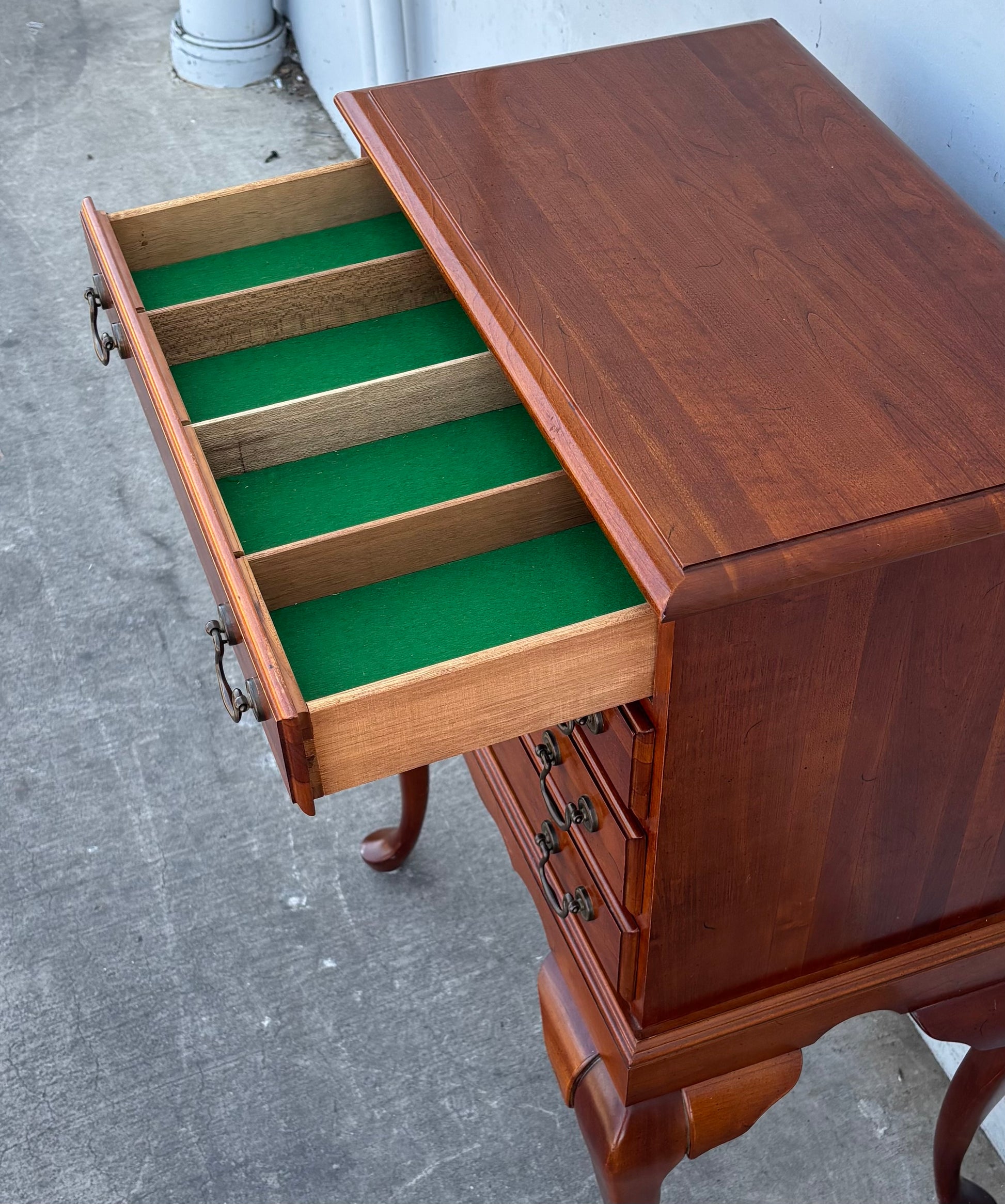 Hello we are selling a Vintage Queen Anne Style Silverware Chest , it is in good condition .