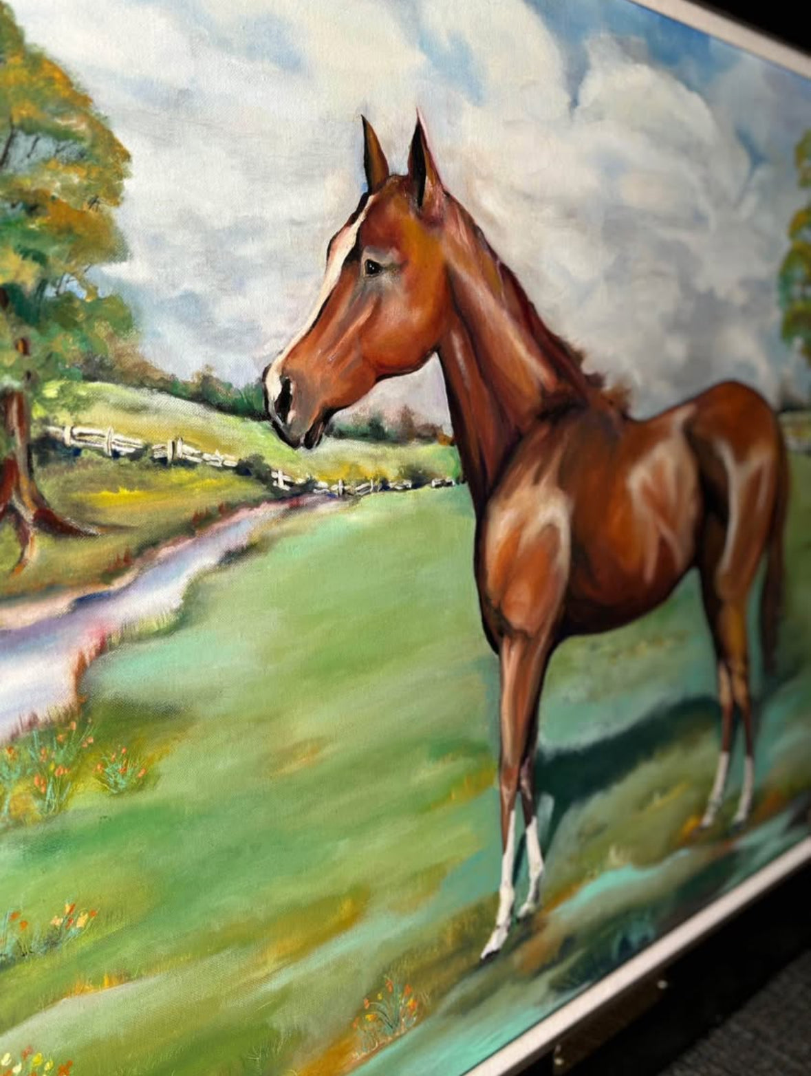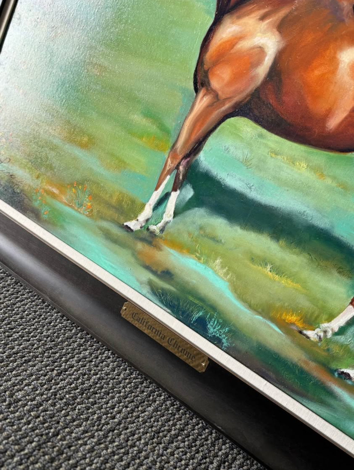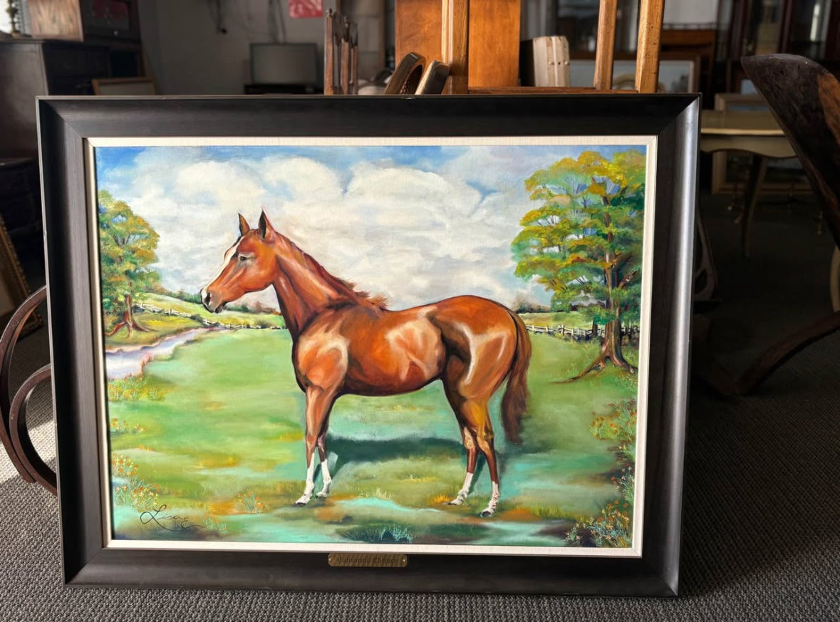Hello we are selling a Vintage Race Horse Painting Oil on Canvas “California Chrome” Signed Framed 46x36 Framed, it is in good condition .