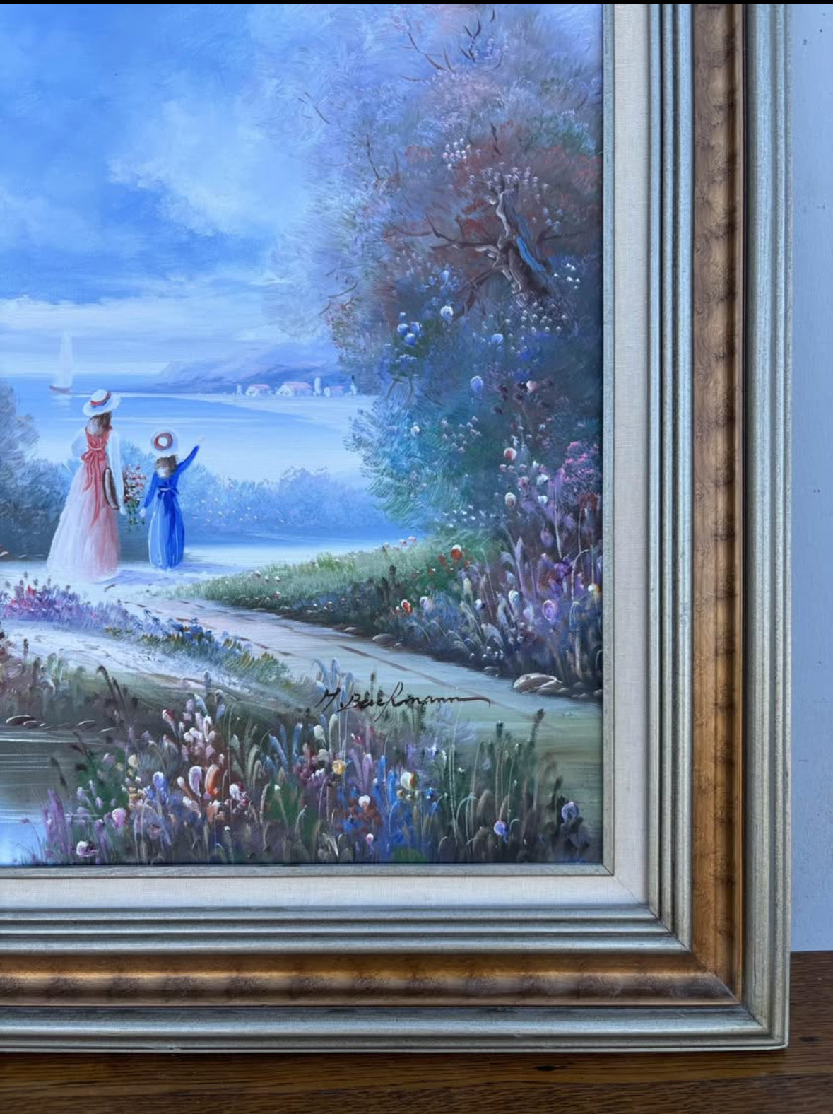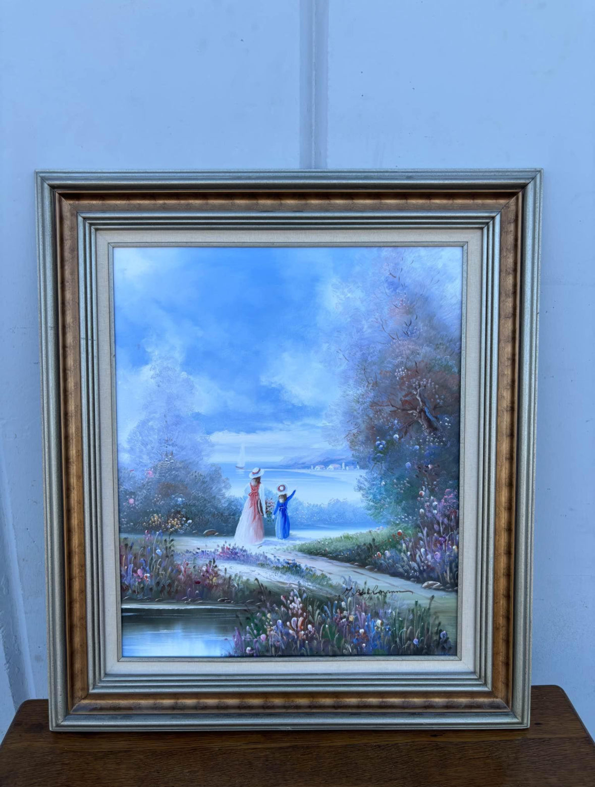 Hello we are selling a Vintage Signed Oil Painting Victorian Beach Scene , it is in good condition .