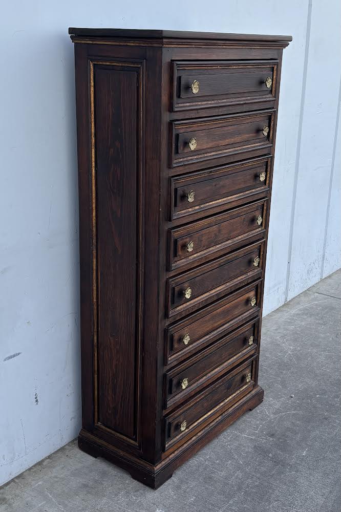 Hello we are selling a Vintage Tall 8 Drawer Dresser Chest ,it is in good condition .
