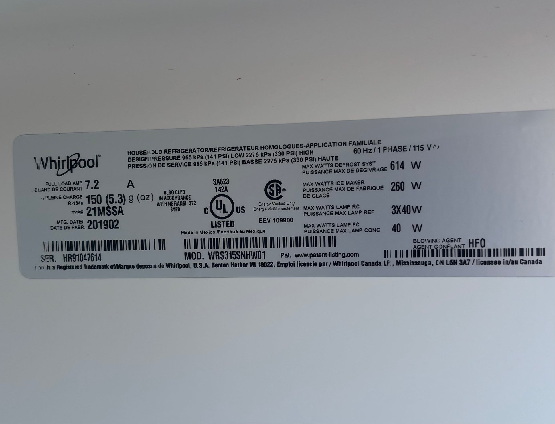 Hello we are selling a whirlpool white side by side refrigerator , it is in good condition .