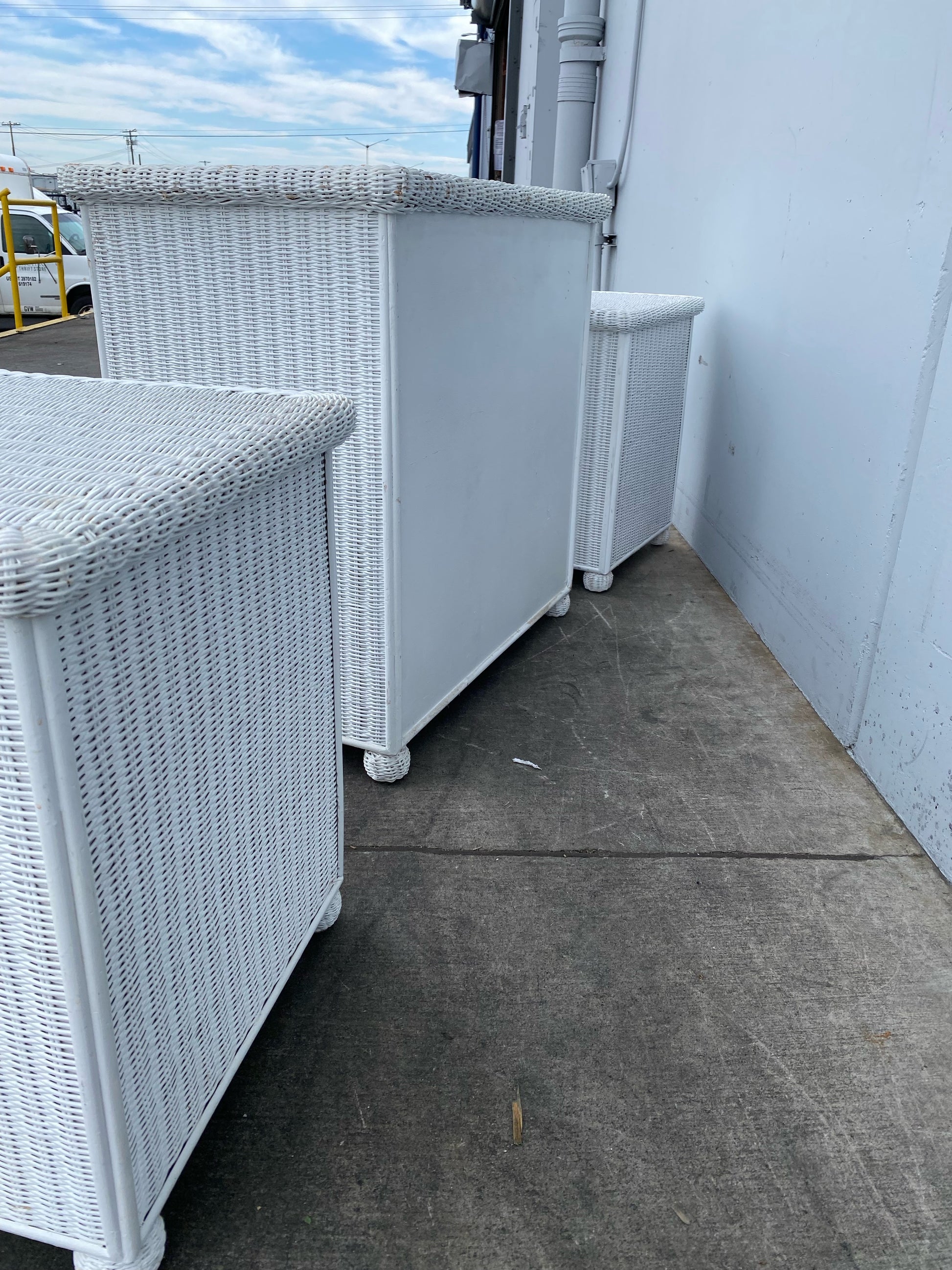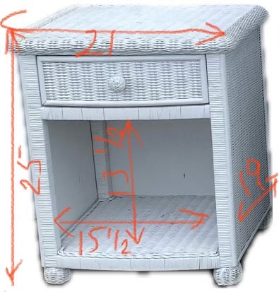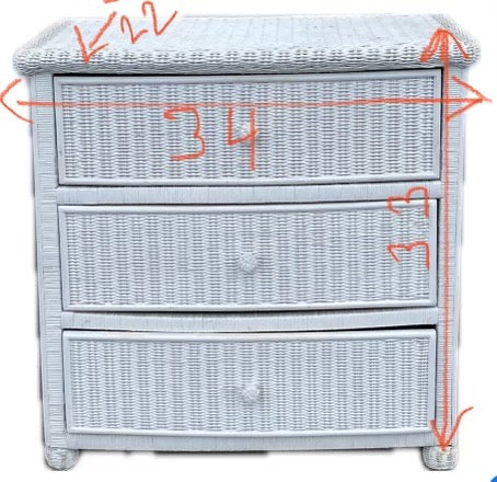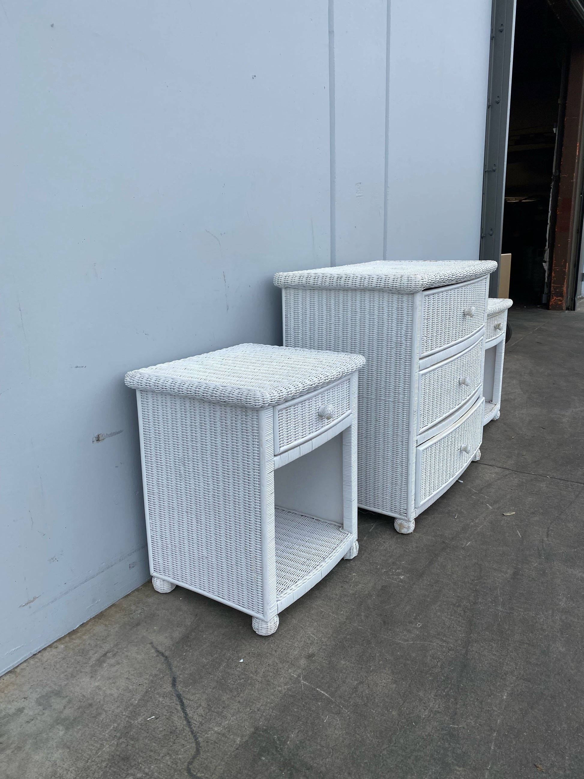 Hello we are selling a white wicker/ cane /rattan dresser with 2 nightstands end/side tables set , it is in good condition.