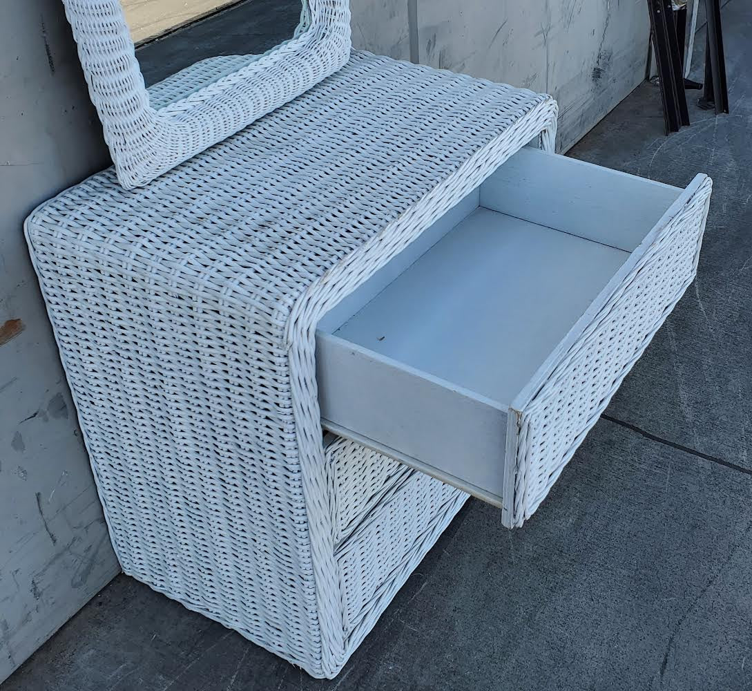 white wicker dresser with mirror