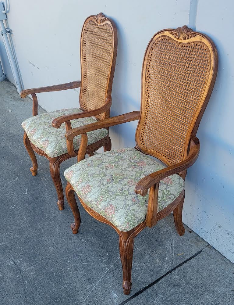 Hello we are selling a Wicker/cane high back armchairs (2) floral cushion vintage ,it is in good condition.