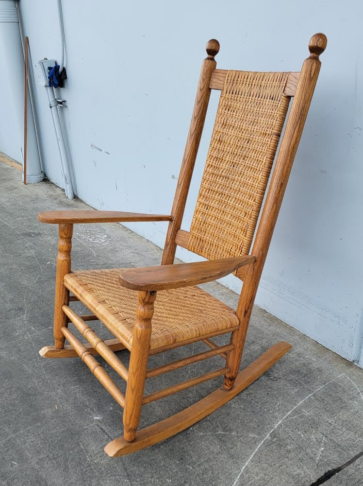 Wicker/ cane/ rattan rocking armchair antique/ vintage light wood
