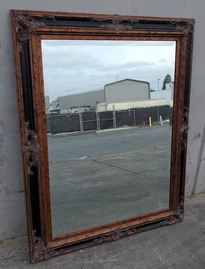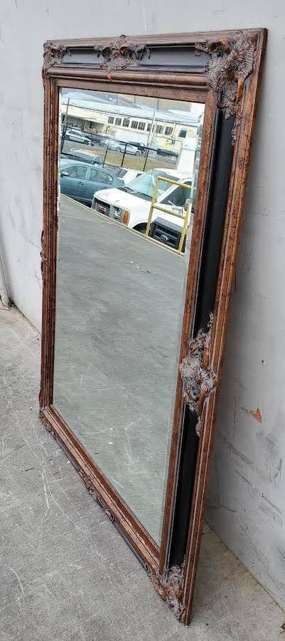 Wood/black Italian style, bevelled plate,w/ antique gilded &ebonised frame wall mirror
