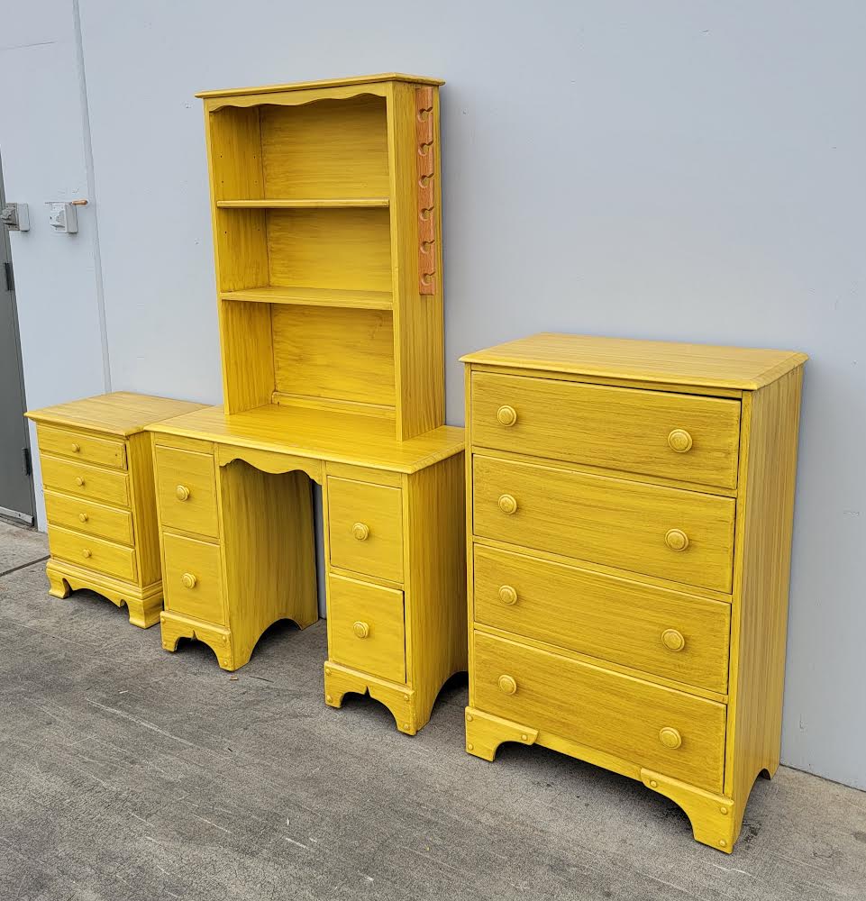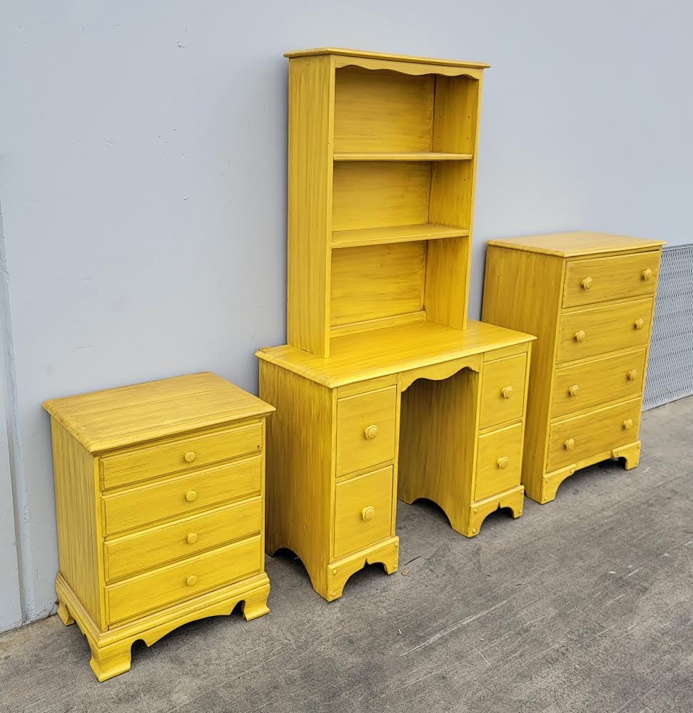 yellow bedroom set highboy dresser , desk with hutch and nightstand