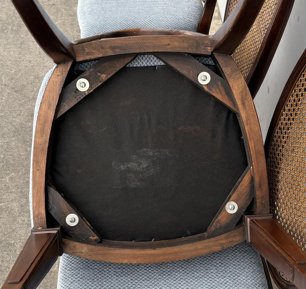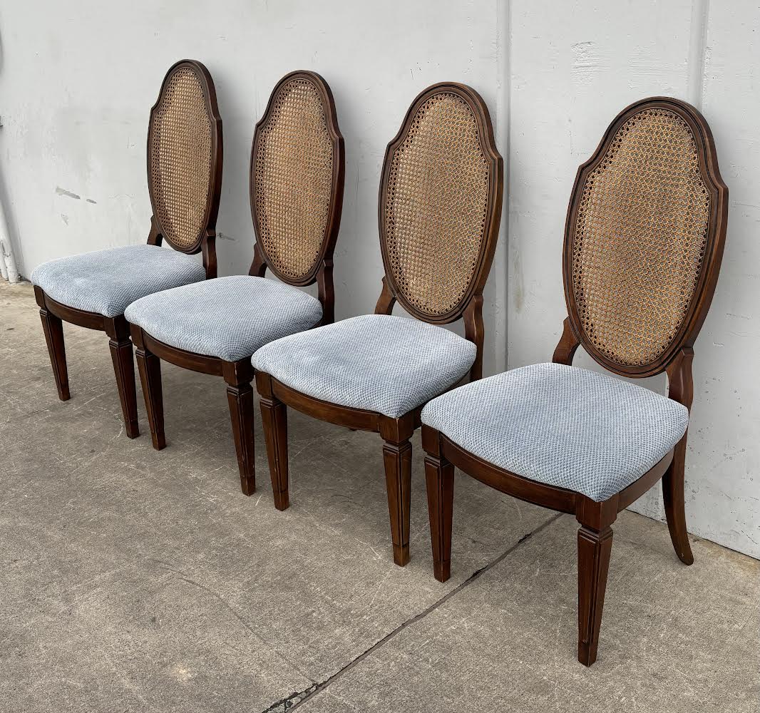 4 Matching Drexel Heritage Walnut & Cane French Provincial Louis XVI Dining Side Chairs Blue