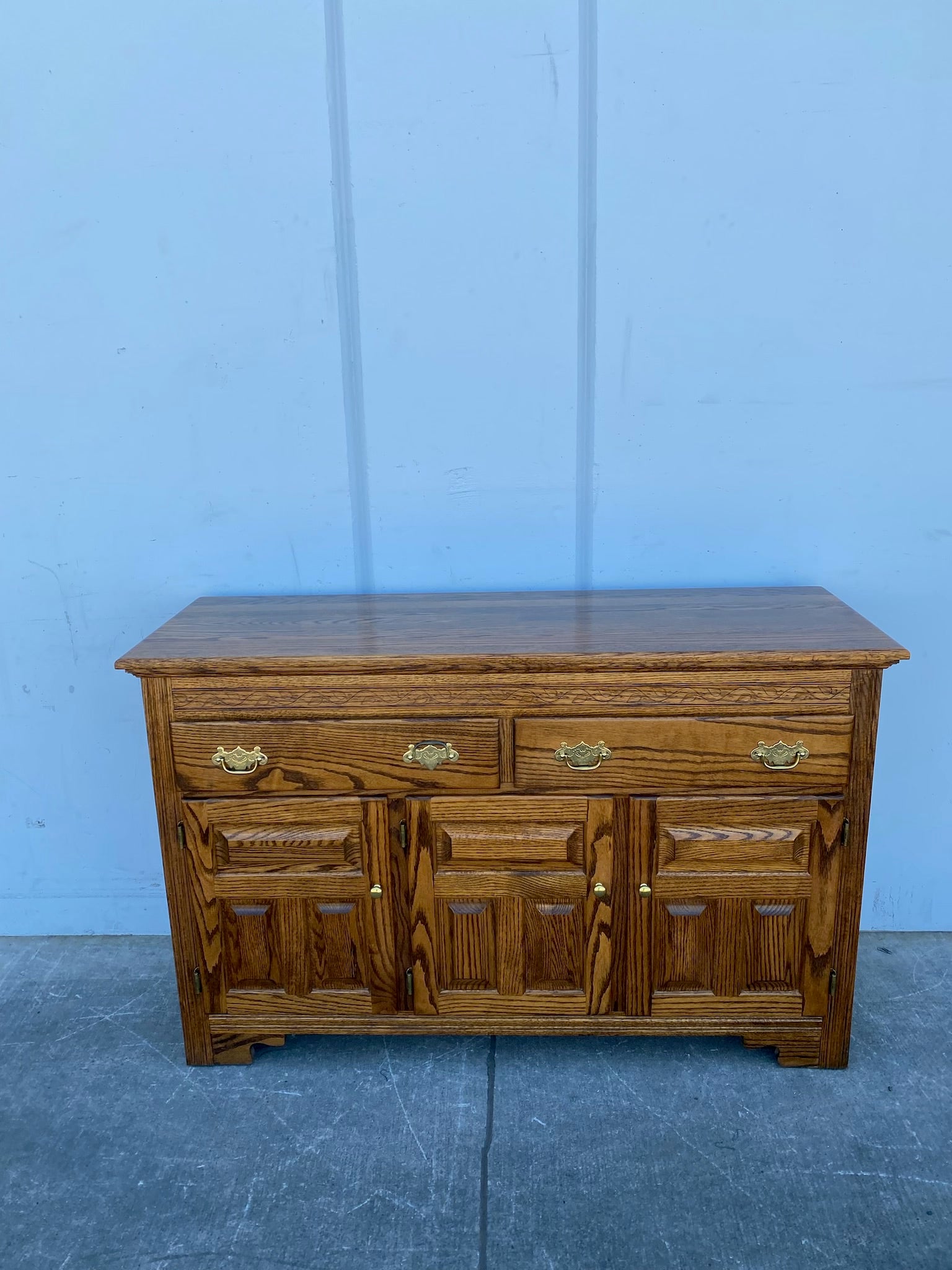 Hello we are selling a Buffet/ sideboard oak cabinet antique/ vintage ,it is in good condition.