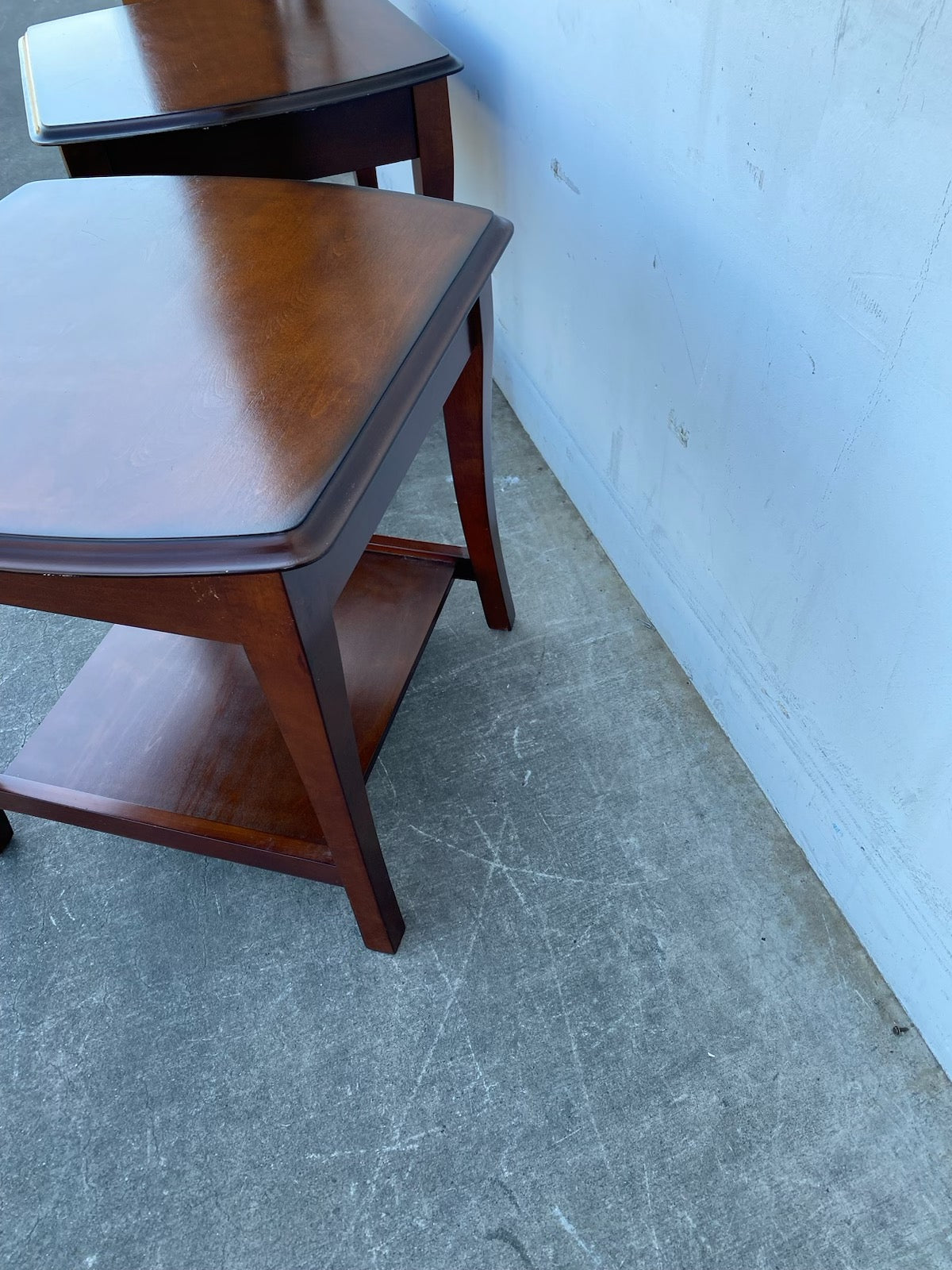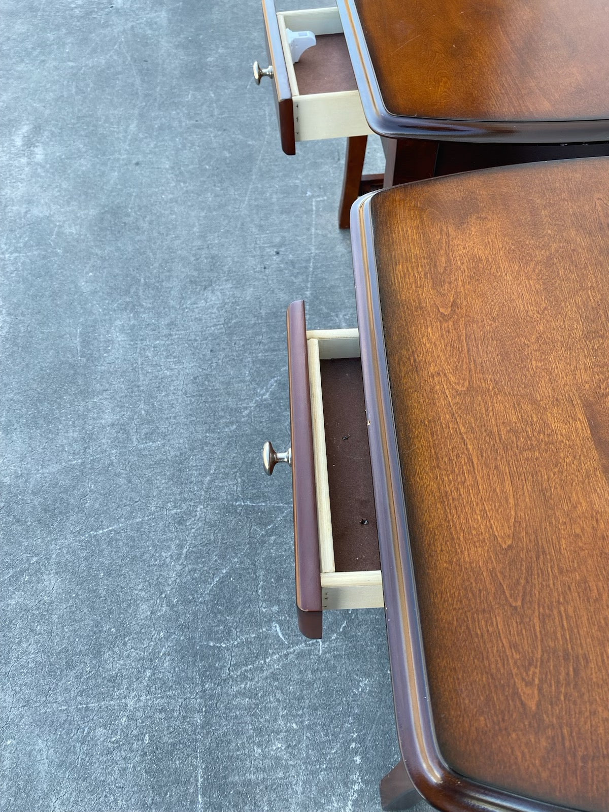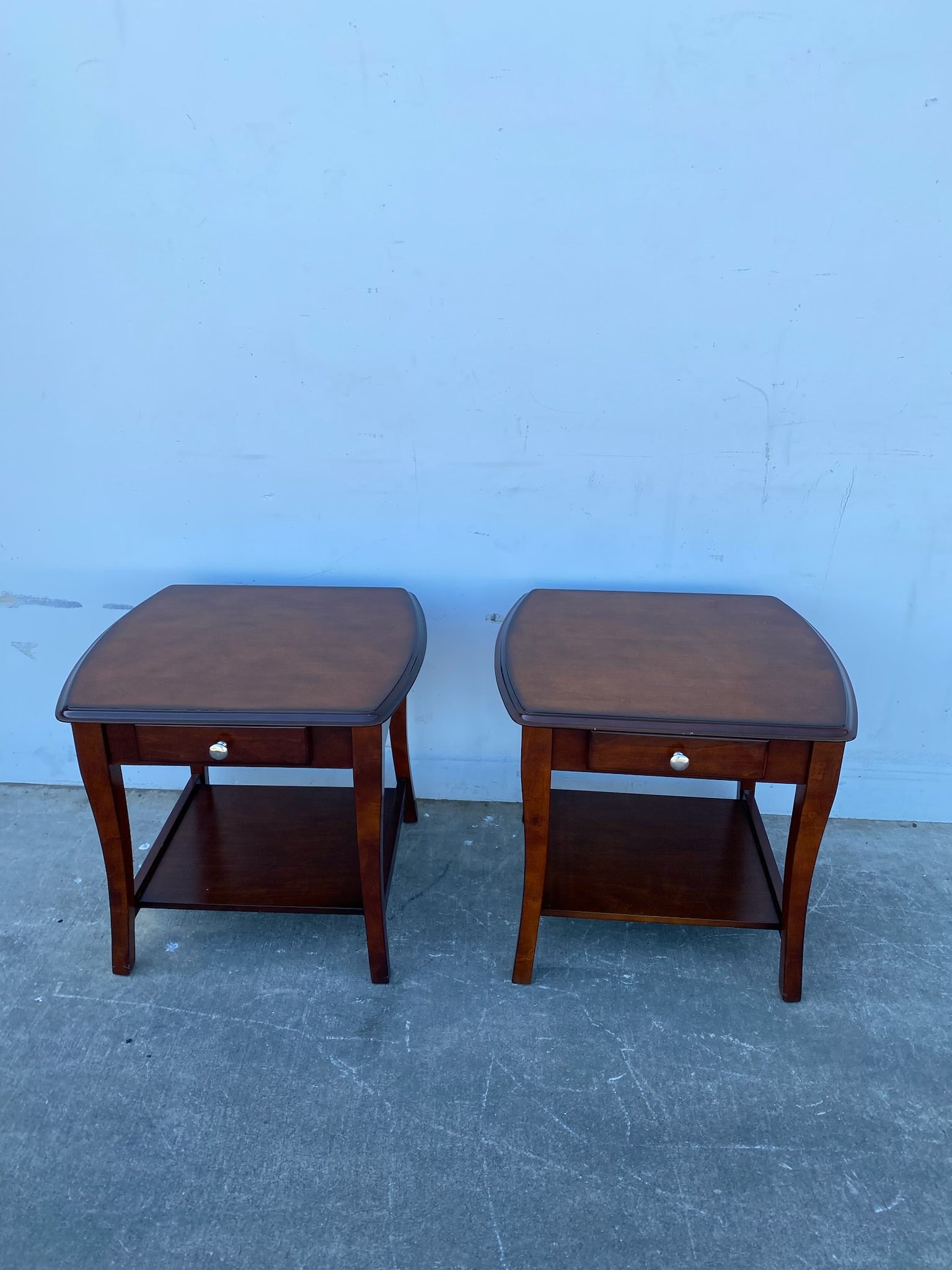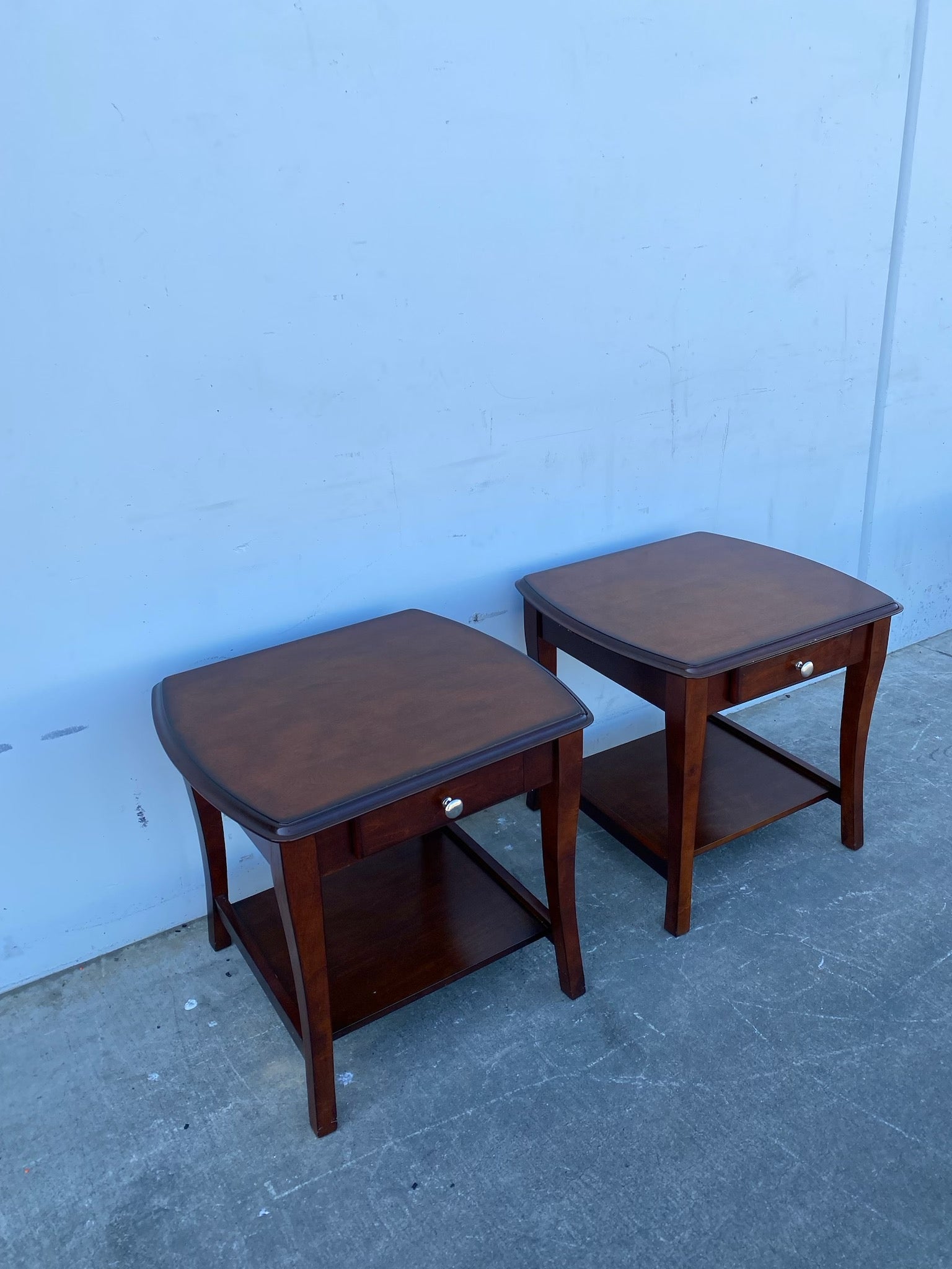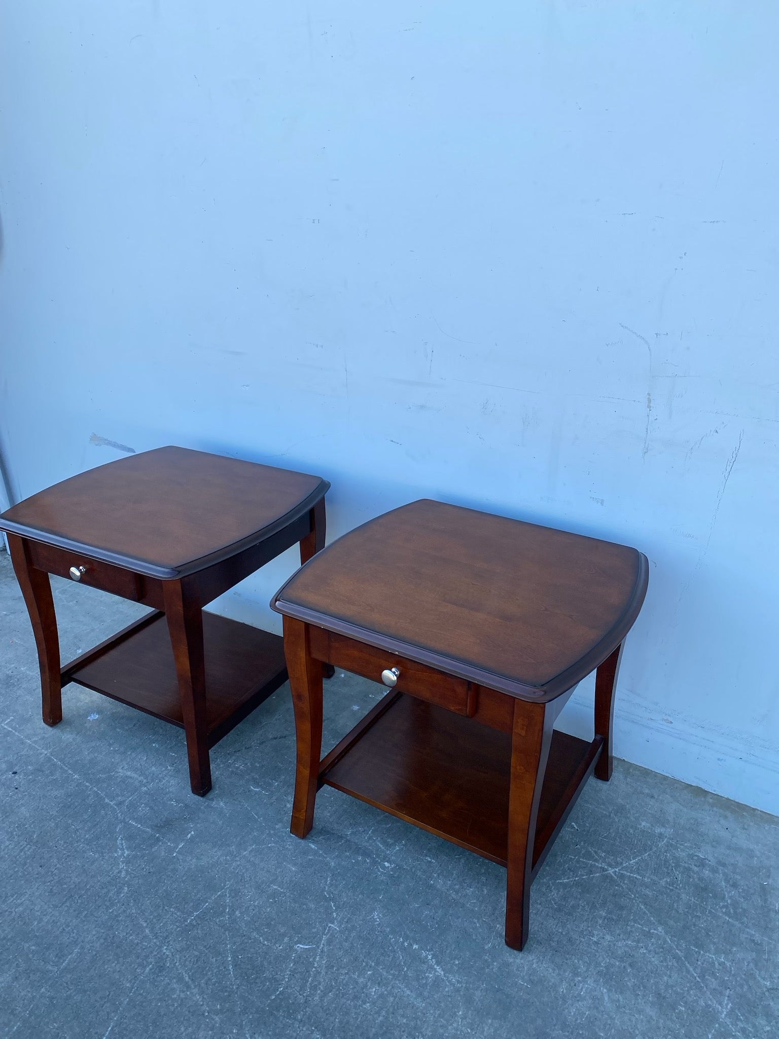 Hello we are selling a Dark wood end/side tables with drawers set(2),it is in good condition.