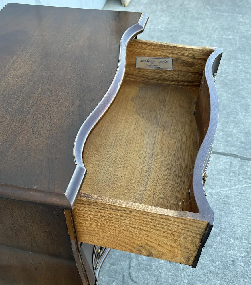 Hello we are selling aVintage Nightstand Drawers With Gold Handles , it is in good condition.